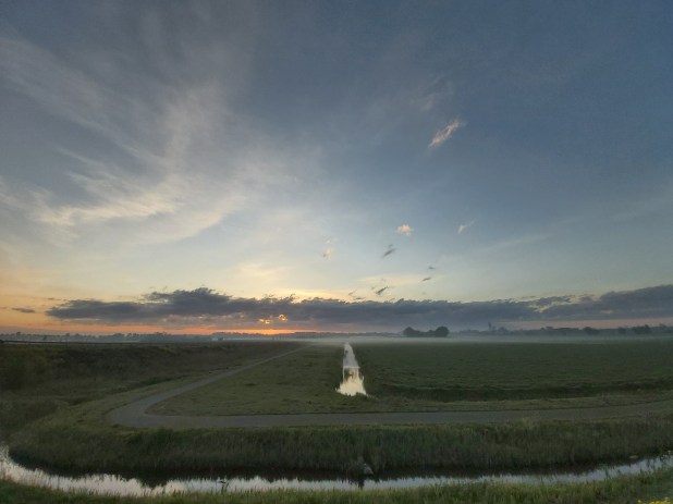 It is a race against the clock! The sun rises earlier every day….today 0554 hr! In late June I’ll have to get up at 0430 to catch the rising sun! Not a cloud in the sky so it was difficult to capture the blinding sun at 0610 hr. But here is a farmhouse that stands alone with fields of solar panels…creeping into it’s bucolic space. How long will the homestead last in 21st C? #NeedCoffee and some cookies soon to arrive in my home delivery groceries!